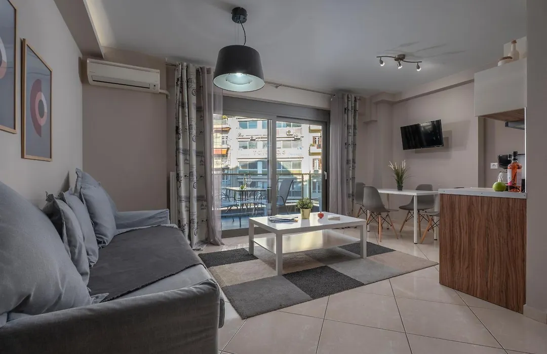 En este alojamiento hay una cocina completa. Elephantas Bar con comida griega espera a los huéspedes a tan solo 5 minutos a pie. La estación de autobuses Ionos Dragoumi está a 5 minutos a pie del apartamento.